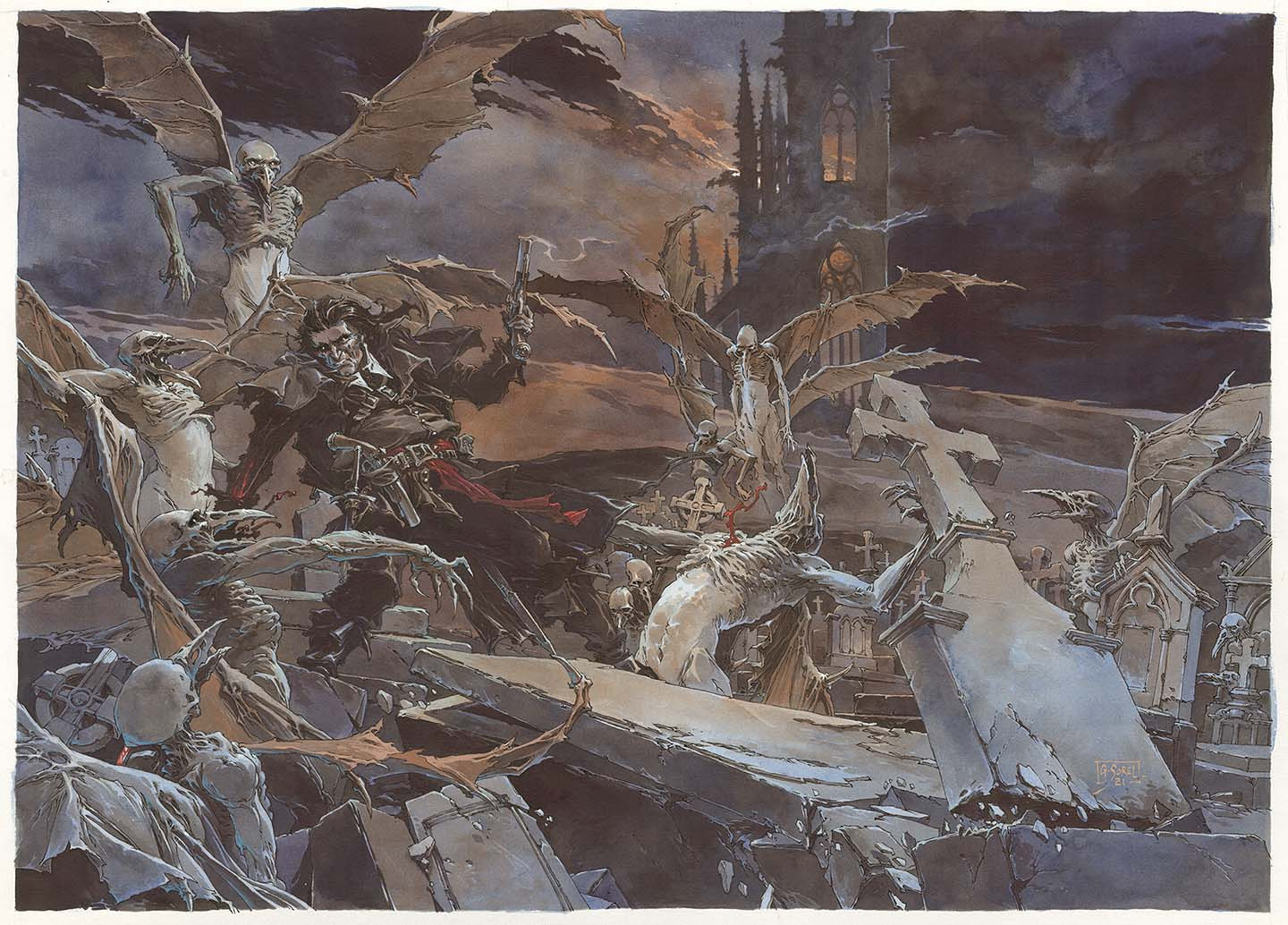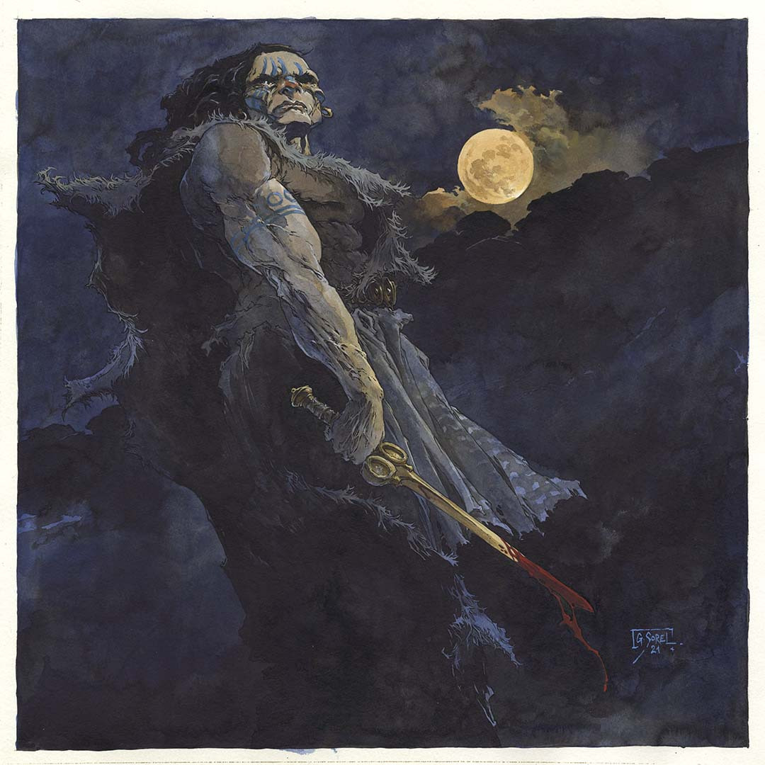 Buy prints / portfolioIn his collaboration with writer Mathieu Gallié, he drew inspiration from 19th century fantasy literature and Hammer films for the one-shot ‘Le Fils du Grimacier’ (Vents d’Ouest, 1995) and the series ‘Algernon Woodcock’ as well as its spin-off ‘Contes des Hautes Terres’ (Delcourt, since 2002). In between these projects, Sorel worked with François Froideval on the fantasy trilogy ‘Mens Magna’ for Soleil Productions.