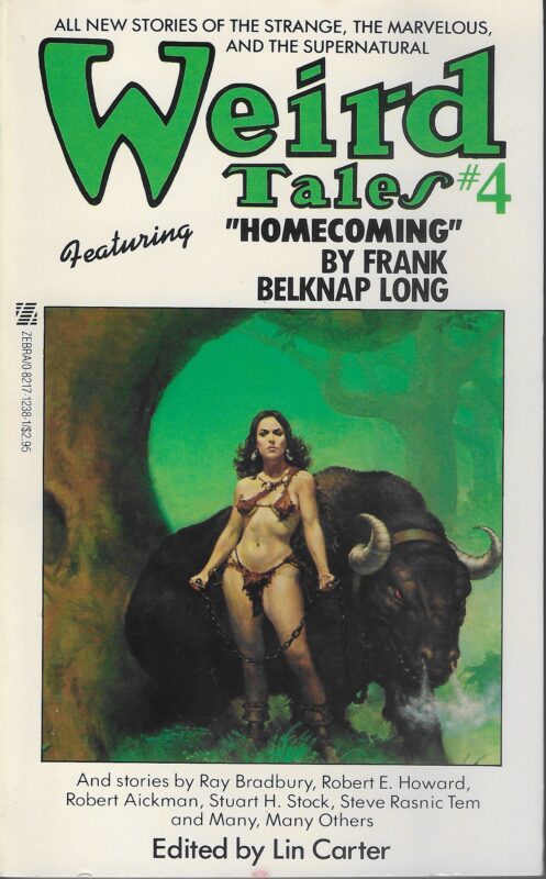 Volume four and the last in a collection of various stories that is called Weird Tales #4. Edited by Lin Carter. It’s a revival of the classic fantasy and horror magazine Weird Tales. It is also numbered vol. 48, no. 4 (Fall 1981) in continuation of the numbering of the original magazine. The anthology was first published in paperback by American publisher Zebra Books in 1983.