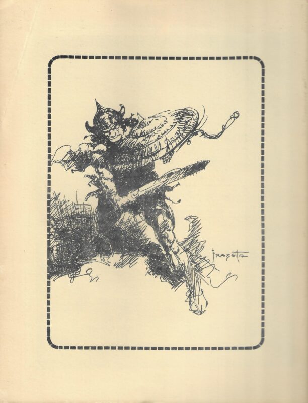 A fanzine or periodical edited by Jonathan Bacon from March 1977. Issue 10/11 Contains the first apperance of GENSERIC’S FIFT BORN SON (see notes).. Front cover by Jim Fitzpatrick, back cover by Frank Frazetta.