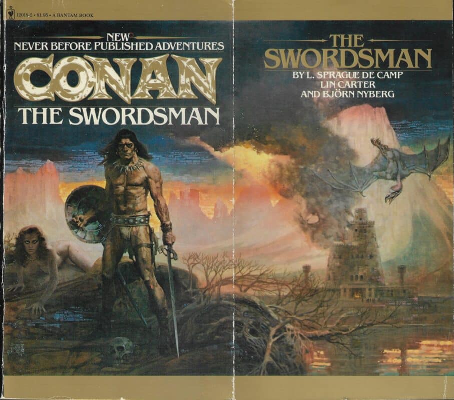 Non-Howard material. Conan the Swordsman is a collection of seven fantasy short stories and associated pieces written by L. Sprague de Camp, Lin Carter, and Björn Nyberg featuring Robert E. Howard’s sword and sorcery hero Conan the Barbarian. It was first published in paperback by Bantam Books in August 1978 and reprinted in 1981. Later paperback editions were issued by Ace Books (April 1987 and March 1991). The first hardcover edition was published by Tor Books in December 2002. The first British edition was issued by Sphere Books in 1978. The book has also been translated into Italian and French. It was later gathered together with Conan the Liberator and Conan and the Spider God into the omnibus collection Sagas of Conan (Tor Books, January 2004).