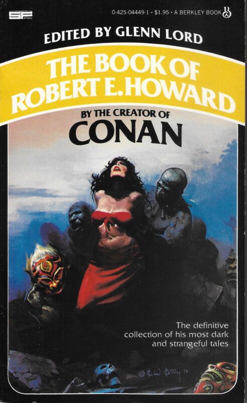 Berkley, 1976; Volume 1 of 2. Mass market paperback, 1st edition. Introduction by the book’s editor Glenn Lord. Includes sixteen poems, and several of Howard’s stories.