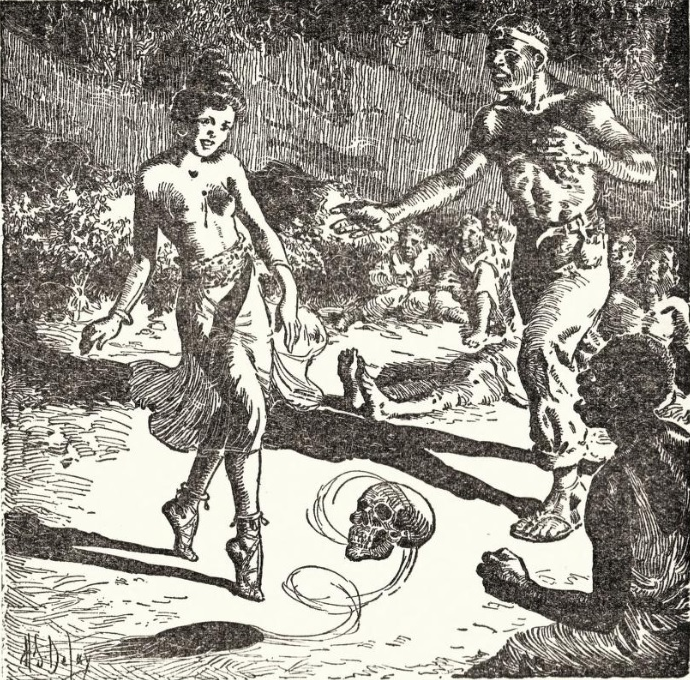 Kirby eventually reaches the heart of the swamp, where he witnesses a nightmarish voodoo ceremony led by Saul Stark. The ceremony includes a frenzied dance by the quadroon woman, who is revealed to be dying from a gunshot wound inflicted by Jim Braxton. Her death throws the gathered blacks into a panic, and they flee the scene.