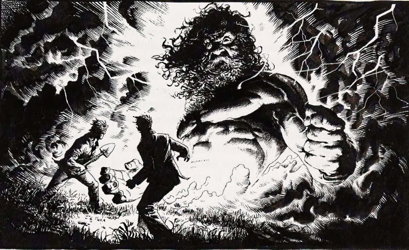 As the narrator arrives at the cairn, he witnesses Ortali uncovering it. In a horrifying turn of events, a holly sprig falls from Ortali’s lapel onto the figure in the cairn. This act awakens the slumbering entity, revealed to be the spirit of Odin, now a monstrous and malevolent force. Ortali is instantly killed by the awakened entity.
